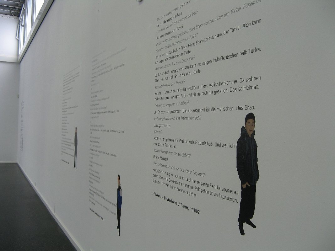 Ausgehend von Interviews und Fotografien wird eine Rauminstallation für den Kunstverein Ludwigshafen geschaffen, die die Lebenssituation von 17 Jugendlichen in Ludwigshafen beleuchtet. In den Interviews erzählen sie von ihren Träumen, Erfahrungen, Wünschen und Vorstellungen rund um ihr Leben in Deutschland. Es entsteht ein persönliches Bild der jugendlichen Migranten. Ein reales Stück Ludwigshafen wird als begehbare Installation mitten im Kunstverein platziert.
