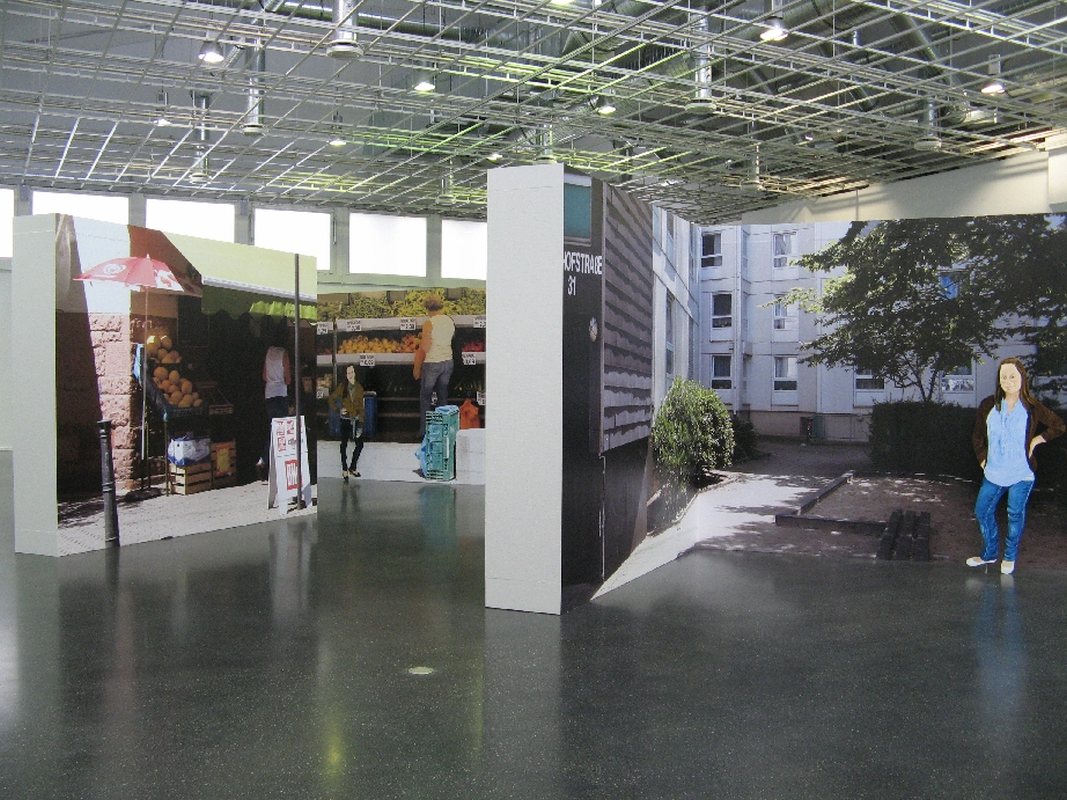 Durch auf Stellwände montierte großformatige Fototapeten werden Straßenzüge des multikulturellen Ludwigshafener Stadtviertels Hemshof in den Ausstellungsraum gebracht. Besucher der Ausstellung schlendern durch diese begehbare Kulisse als Akteure wie Passanten und treffen so bei ihrem Spaziergang auf die interviewten Bewohner des Viertels / Teilnehmer des Projekts, die als gemalte Figuren frei im Raum stehen und auf den ersten Blick wie reale Personen wirkten. Die Besucher werden selbst Teil der Installation.